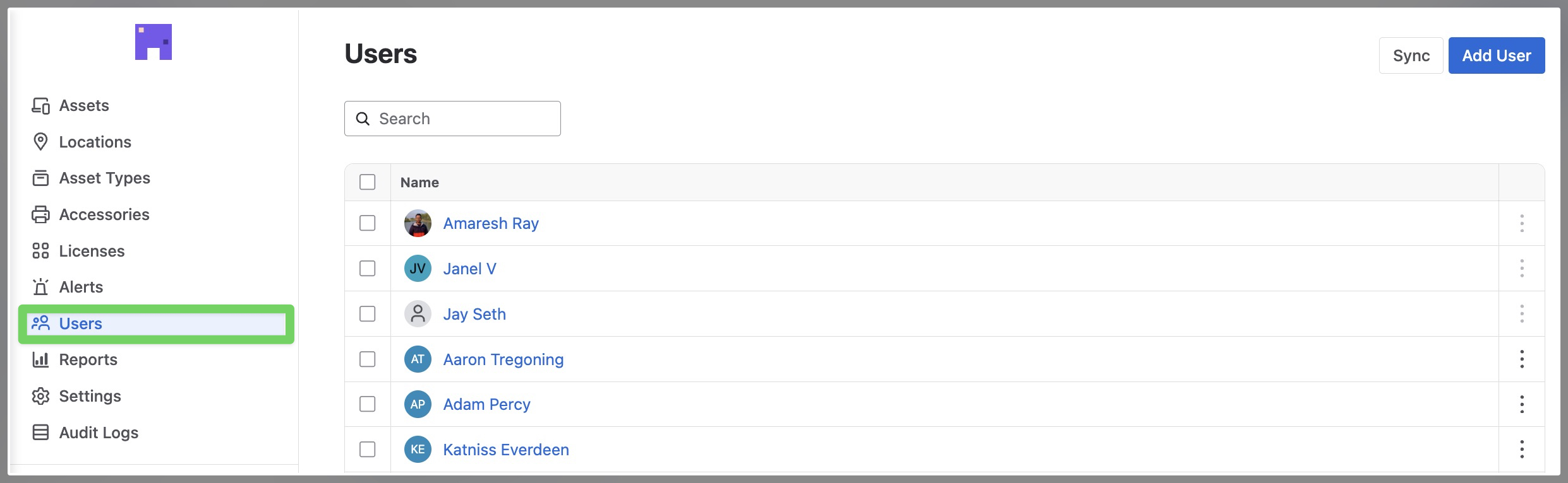 To ensure the accuracy of this list please sync your users regularly by clicking the Sync button.
