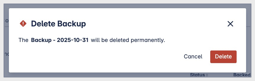 To Delete Backup: Click the ellipses and select Delete on a backup you no longer need.